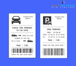 Ticket issued by the government or private companies on the public or private land such as supermarket, hotel, public area car parks etc. Car parking is either indoors (shopping malls) or outdoors (commercial areas), and both require a different set of properties for ticketing. For indoor car parks, parking tickets are machine fed and are thicker than the outdoor version.